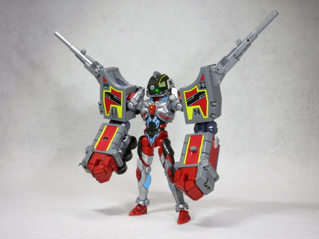 流遠亜沙 ASSAULT form「どの形態も完璧。パワードゼノンを再現するのだけ専用パーツが必要で、可動も全然だけど、こればかりは元の設定上しゃーない。むしろよく、これだけ格好良く出来たよ。あ、あとはマックスとフルパワーの時、腕を替えたりはするけど、サイズと強度を考えると、これも仕方ないんじゃないかしら」