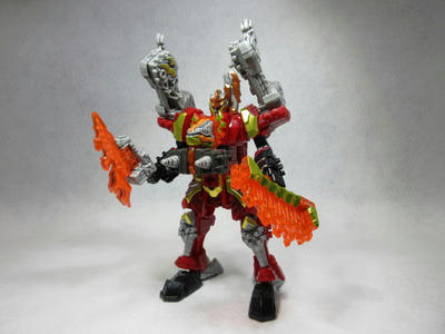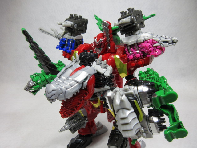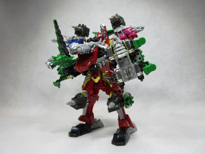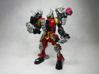 流遠亜沙 ASSAULT form「やっぱり、ここが定位置よね。ちなみに、キシリュウオーの胸との間にジョイントパーツを噛ませる事で、ギリギリ顔が見える位置に取り付けが可能です」