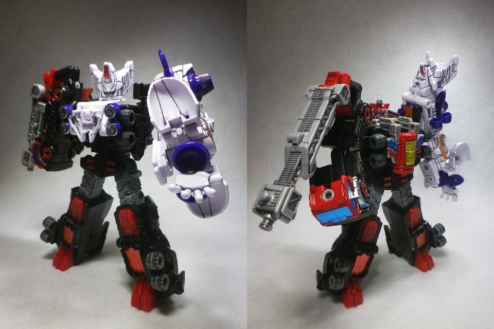 ツバキ ASSAULT form「並んでいるビクトリールパンカイザーの両腕は、ビークル形態で残っていたダイヤルファイターですね」