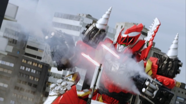 ツバキ ASSAULT form「『ルパパト』では主にルパンカイザーをCGにする事でスピーディなアクションをさせ、パトカイザーと差別化を図り、グットクルカイザーVSXに至ってはオールCGという大胆さでしたが、本作のキシリュウオーは完全にスーツですね」