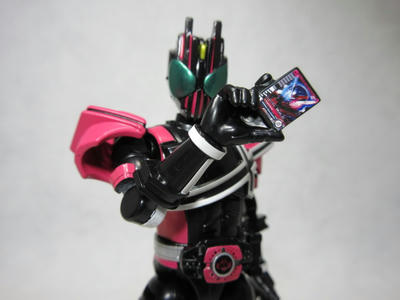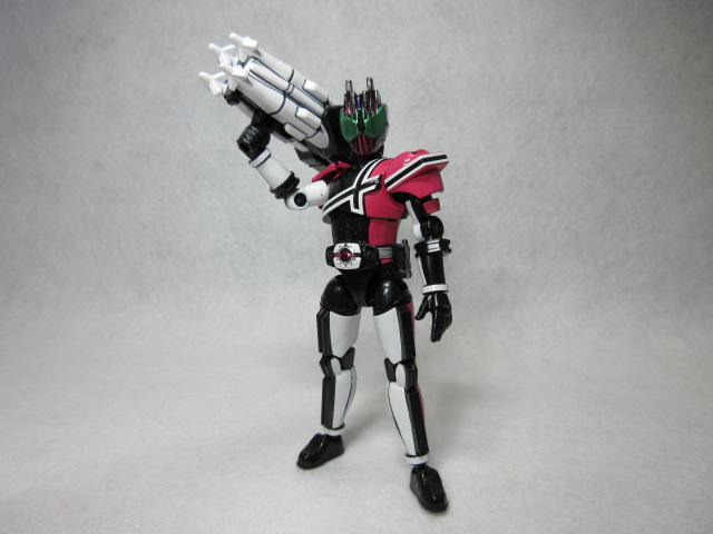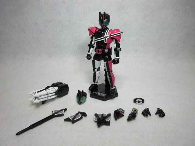 ツバキ ASSAULT form「すごいですね。オプションパーツはシノビ用の刀が2本ありますが、ほぼディケイド用で、激情態と共通のディケイドライバーを付ければ、TVシリーズ版(09年)も再現可能です」