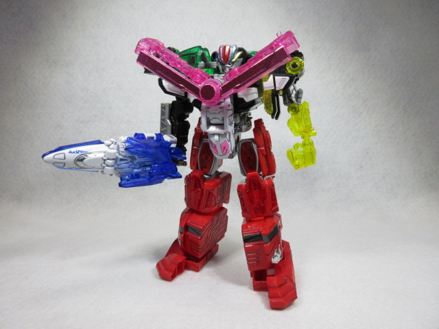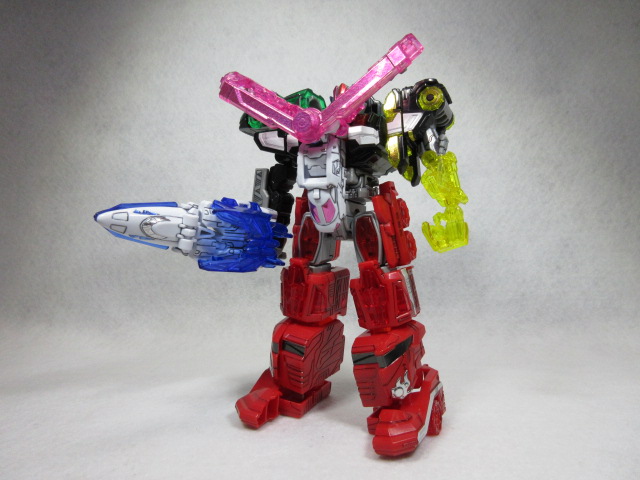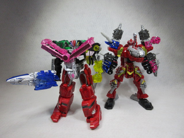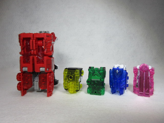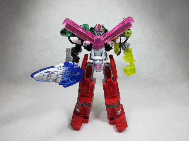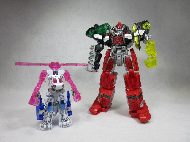 ツバキ ASSAULT form「去年のキシリュウオウーは1号メカ単体でもロボになれましたが、基本は3機合体だったので、第1弾は全5箱でしたね」